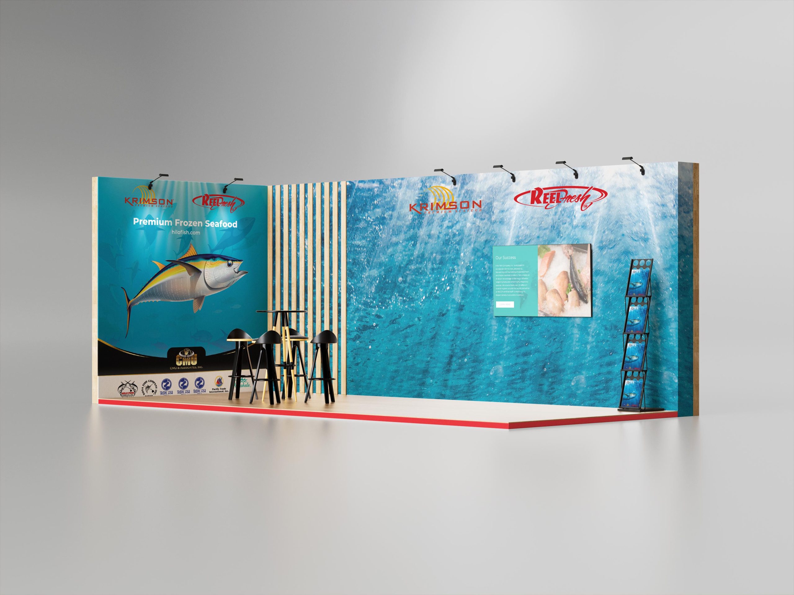 Desain ini secara efektif menarik perhatian pengunjung, mengkomunikasikan pesan brand dengan jelas, dan meningkatkan brand awareness Hilo Fish, Krimson, dan ReelFresh.