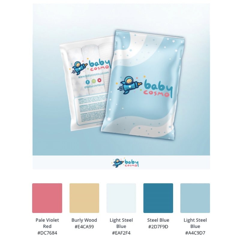 Meskipun hijau mint menjadi bintang utama pada kemasan ini, sentuhan pastel pink dan kuning juga ditambahkan. Dalam banyak kasus, tiga warna pastel sekaligus bisa terasa berlebihan, tetapi karena produk ini ditujukan untuk bayi, kombinasi ini berhasil.