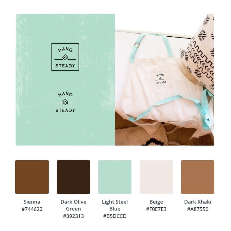 Warna pastel pada branding Hang Steady adalah hijau mint murni. Pilihan warna ini tidak hanya serasi dengan warna netral, tetapi juga menarik bagi pria dan wanita, membuat branding terasa lebih inklusif dan universal.