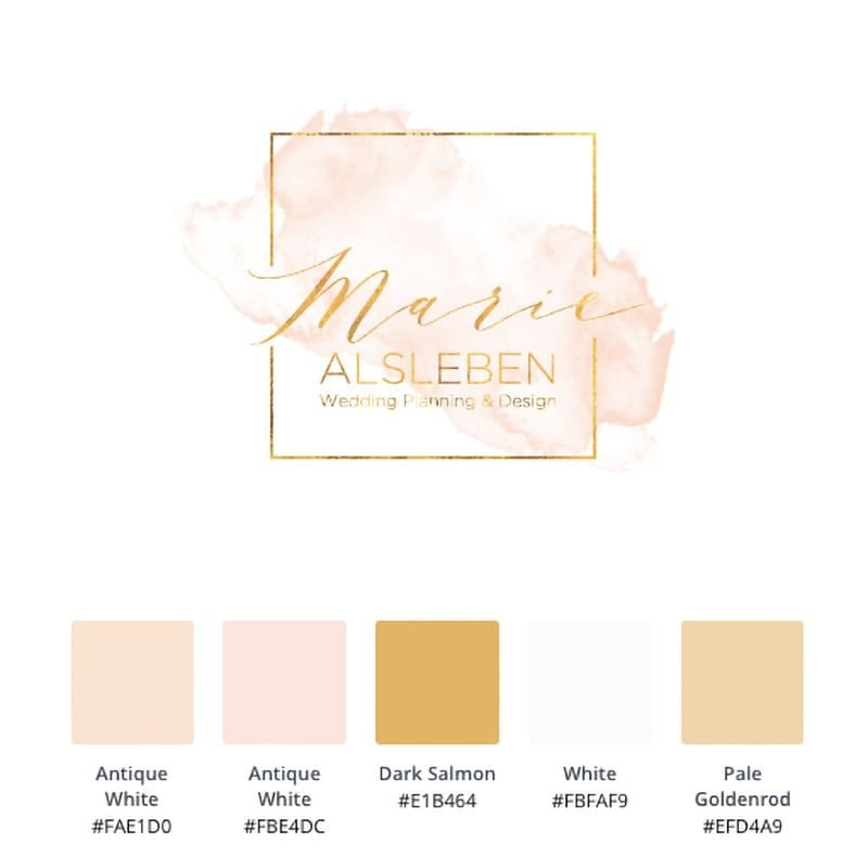 Memadukan warna peach dengan emas, seperti pada desain logo ini, menciptakan tampilan yang canggih dan feminin yang cocok untuk bisnis apa pun yang menargetkan wanita.