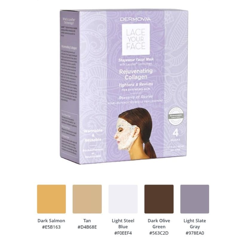 Lavender dikenal dapat menenangkan, menjadikannya favorit di industri kecantikan. Contohnya seperti masker Lace Your Face dari lini skincare DERMOVIA, yang menggunakan berbagai nuansa ungu pastel untuk mengomunikasikan pengalaman menenangkan saat menggunakan produk mereka.