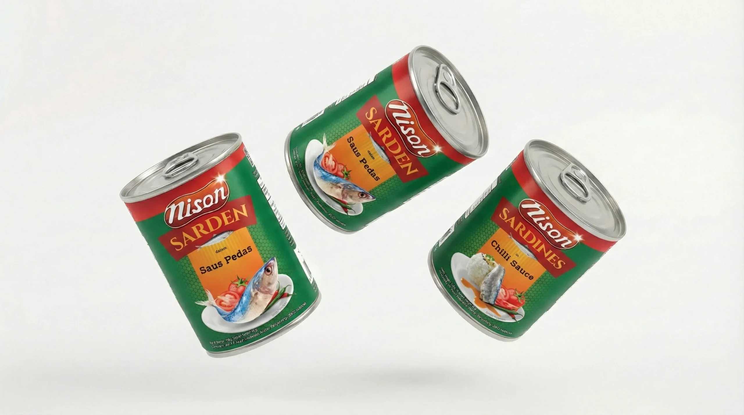 PT Nison Indonesia adalah produsen ikan kaleng dari Banyuwangi. Saat mereka bersiap meluncurkan varian Sarden Saus Pedas untuk pasar lokal dan ekspor, kami membantu merancang desain kemasannya. Karena perusahaan ini sudah memiliki standar internasional, desain yang dibuat harus terlihat profesional dan bisa diterapkan dengan rapi di dua ukuran kaleng: 155gr dan 425gr.