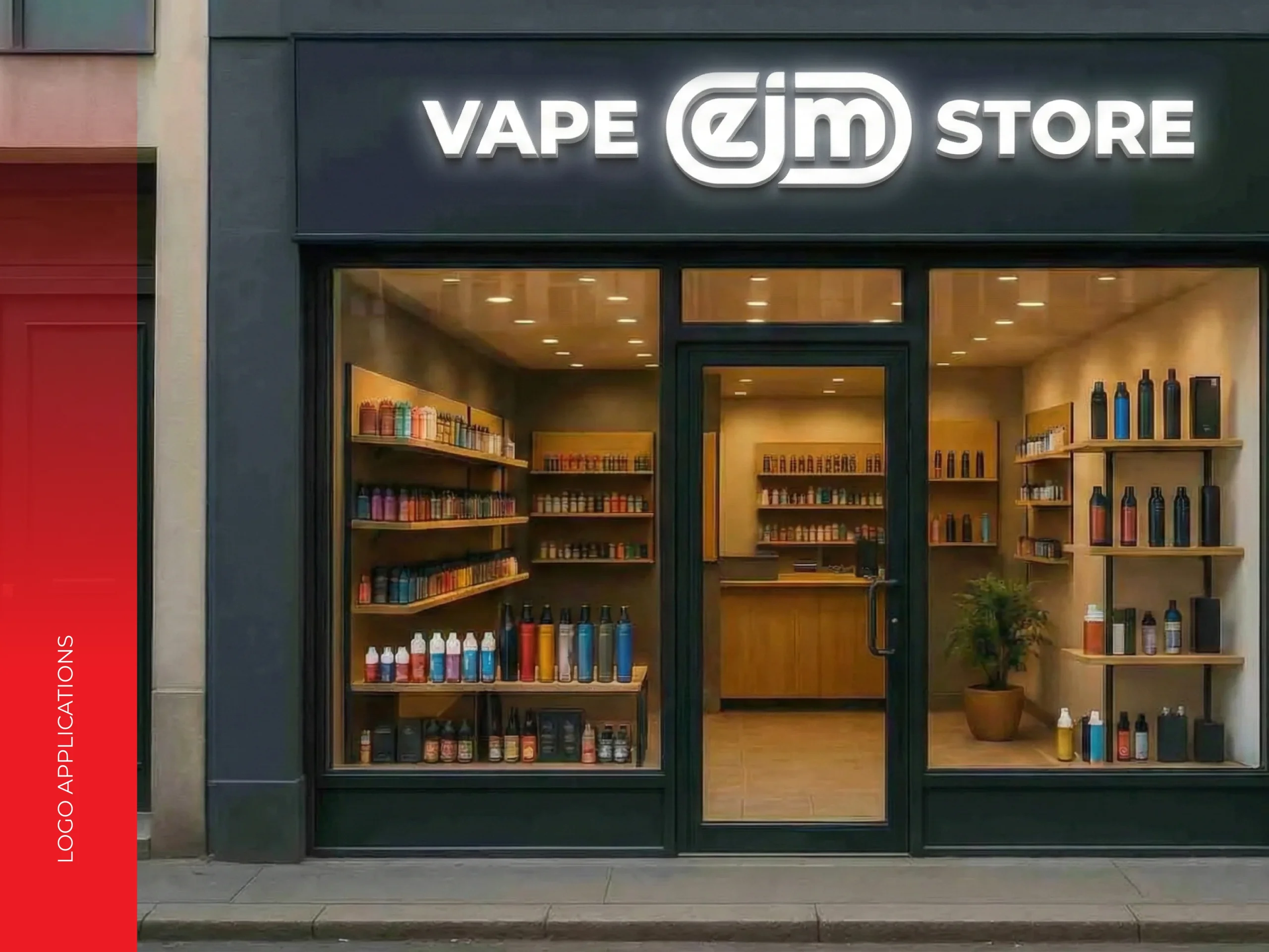 Banyak toko vape menggunakan desain yang gelap dan terlalu ramai. Kami ingin EJM tampil berbeda. Tantangannya adalah membuat EJM terlihat sebagai toko yang bersih, modern, dan dapat dipercaya oleh konsumen. Selain itu, logonya harus dirancang agar tetap terbaca jelas, baik saat dipasang sebagai papan nama besar di depan toko maupun saat dicetak kecil di pinggir poster.